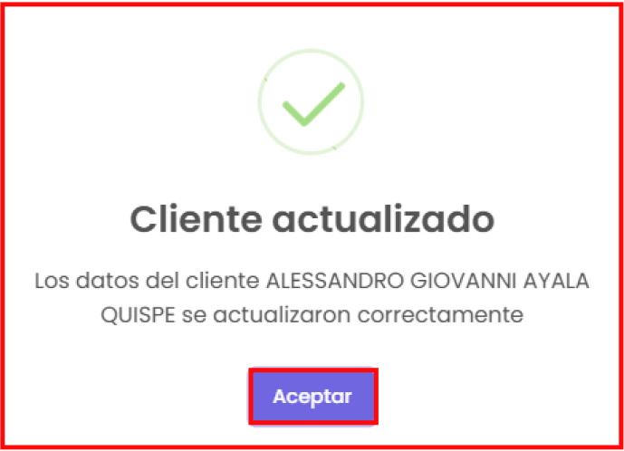 Al hacer clic en el botón “Actualizar”, te mostrará todos los campos del cliente que podrás modificar. En la siguiente imagen puedes visualizar los campos correspondientes: