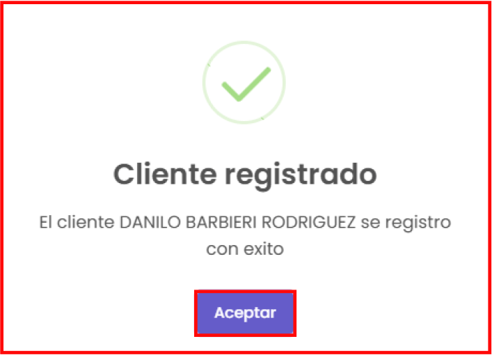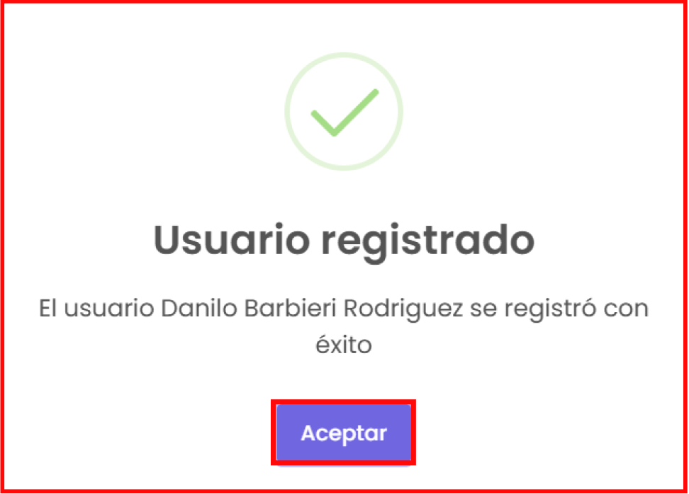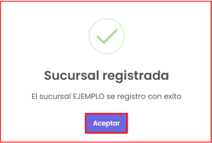 Luego de terminar de llenar los campos, haz clic en el botón de “Guardar”, donde te mostrará la siguiente vista de confirmación: