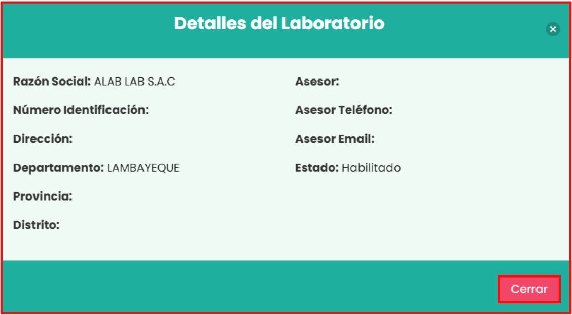 Al hacer clic en el botón “Detalles”, te mostrará todos los detalles del laboratorio en la siguiente vista: